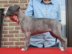 Boy 1 : light cream blue brindle Girl 1 : brindle & white